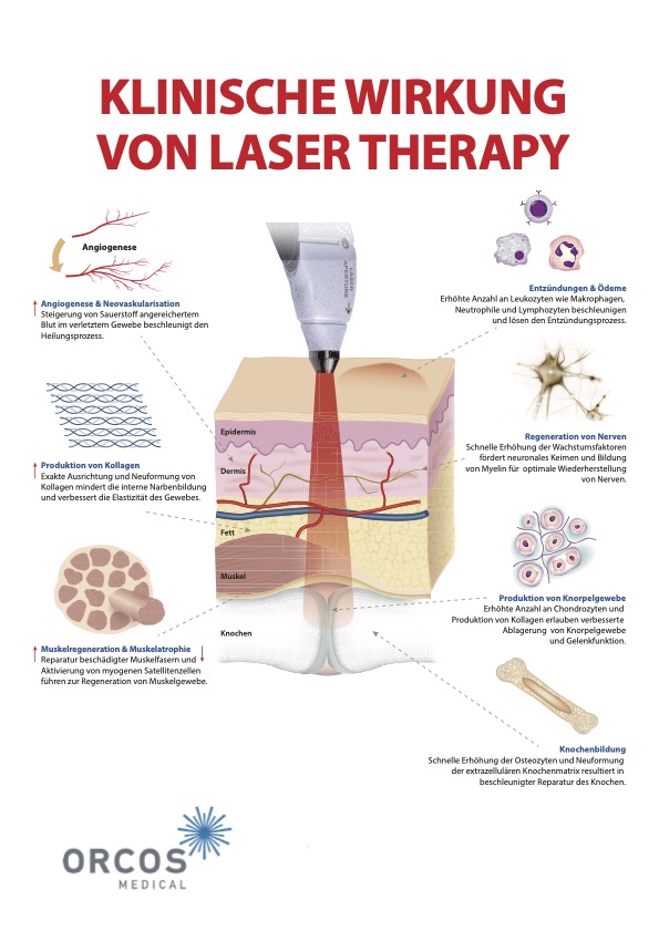 Moderne Lichttherapie zur Unterstützung der natürlichen Heilungsprozesse im Gewebe (Biostimulation).